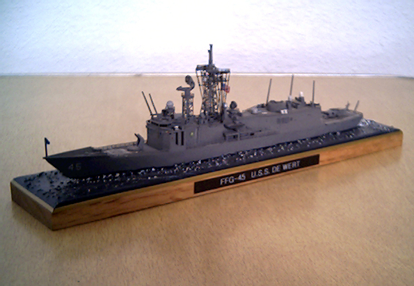 This is a model of the Guided Missile Frigate U.S.S. DeWert, FFG-45. The Fujimi kit was built straight out of the box and detailed with its own photo etched set.