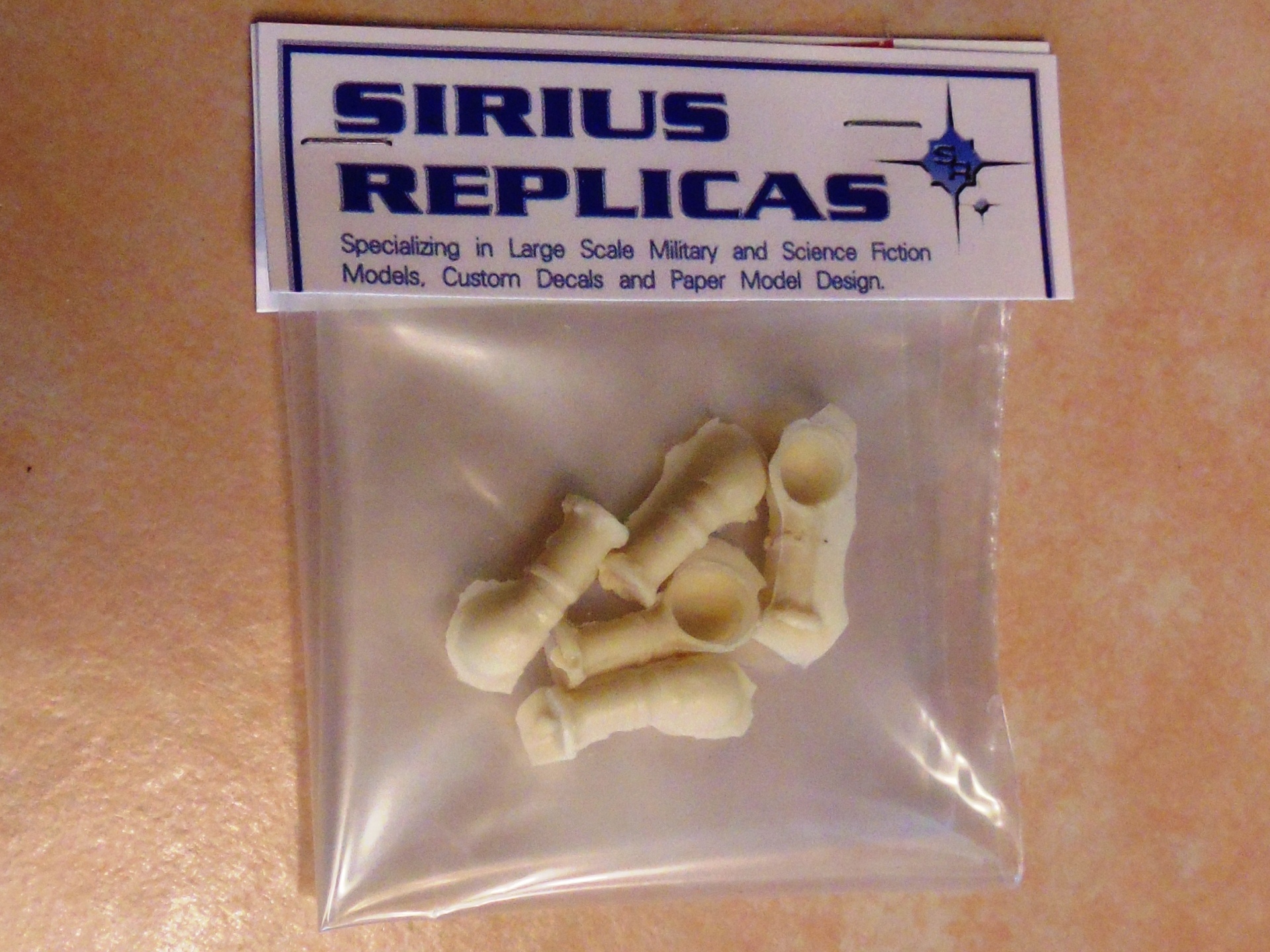 This is a set of (5, plus two spare) resin cast vents for supplementing the single vent provided in the Bluenose kit allowing upgrade to Bluenose II and Bluenose III. The image shown here is the package of 5 vent parts. For best results, I recommend spot putty as needed.